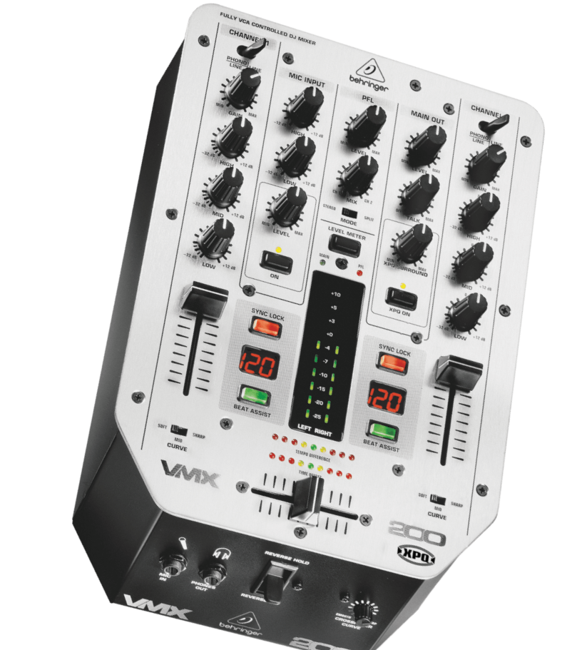 El Behringer PRO MIXER VMX200 es un mezclador para DJ de dos canales que se convirtió en un estándar para principiantes desde su lanzamiento a principios de la década de los 2000.
